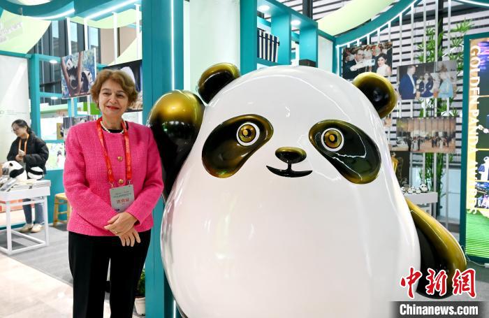 11月26日,四川成都,聯(lián)合國(guó)教科文組織前總干事、歐盟亞洲中心董事會(huì)高級(jí)顧問(wèn)伊琳娜·博科娃與大熊貓玩偶合影留念。中新社記者 安源 攝