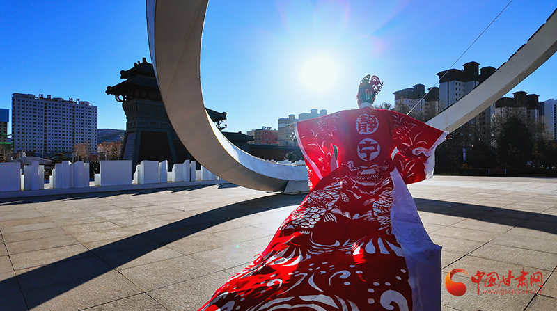 在靜寧縣成紀(jì)文化城里,兩名模特身著“盛裝”翩翩起舞,盡情展示自信與優(yōu)雅,緩緩走動(dòng)間,靜寧蘋果、靜寧果農(nóng)等元素裝飾的紅色剪紙服飾隨風(fēng)搖曳,讓國家級“非遺”——中國剪紙也流動(dòng)了起來。這精彩的作品展示,來自仇跟銀的妙手。