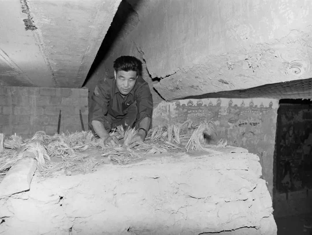因為經(jīng)費緊張,我們于是自己想辦法,到洞窟前面的樹林里面去砍伐死樹,自己加工制作遷移壁畫的模型。采用單層壁畫揭取的鋸取法,把甬道口內(nèi)外連接前室和主室的表層壁畫分割揭取下來,用夾板固定揭取下來的壁畫層,防止壁畫變形、破裂。然后從甬道口內(nèi)外兩側(cè)由上而下,拆除和鋸割兩層壁畫之間的土坯、泥層。