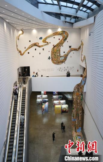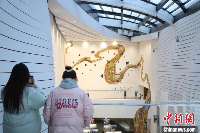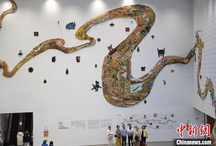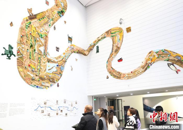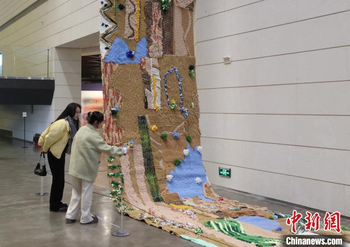 12月8日,市民在寧夏銀川當代美術(shù)館欣賞“奔流的舞姿:藝起織造母親河”藝術(shù)展。當日,“奔流的舞姿:藝起織造母親河”公益項目藝術(shù)展在銀川當代美術(shù)館正式對公眾開放。該項目匯聚了黃河兩岸200余位織手的巧作,按照黃河特點和視覺審美拼接和織造,織造出一個極具視覺效果的“大河”,通過藝術(shù)的橋梁,展示奔涌黃河的優(yōu)美舞姿和不息精神,同時激發(fā)社會各界對黃河生態(tài)保護的共識與行動。中新社記者 于晶 攝