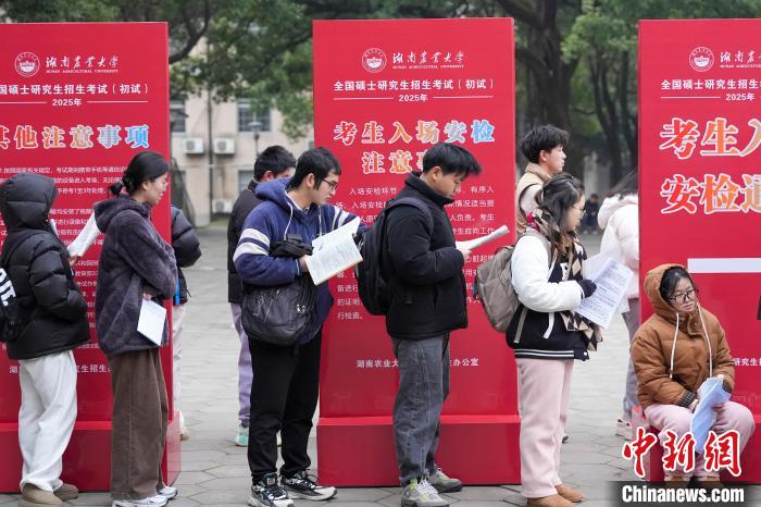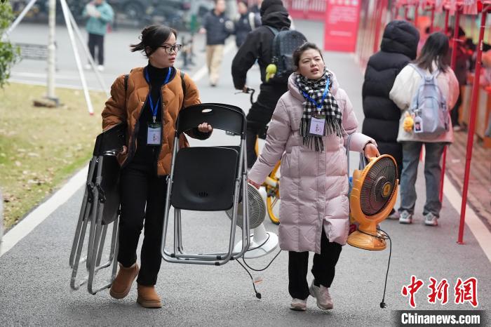 12月21日,2025年全國碩士研究生招生考試初試開考,眾多考生來到湖南農(nóng)業(yè)大學(xué)考點參考。據(jù)教育部數(shù)據(jù)顯示,2025年全國碩士研究生報名人數(shù)為388萬,相比去年下降50萬人,已是連續(xù)兩年報名人數(shù)下降。圖為志愿者將椅子與取暖設(shè)備送入考場。中新社記者 楊華峰 攝
