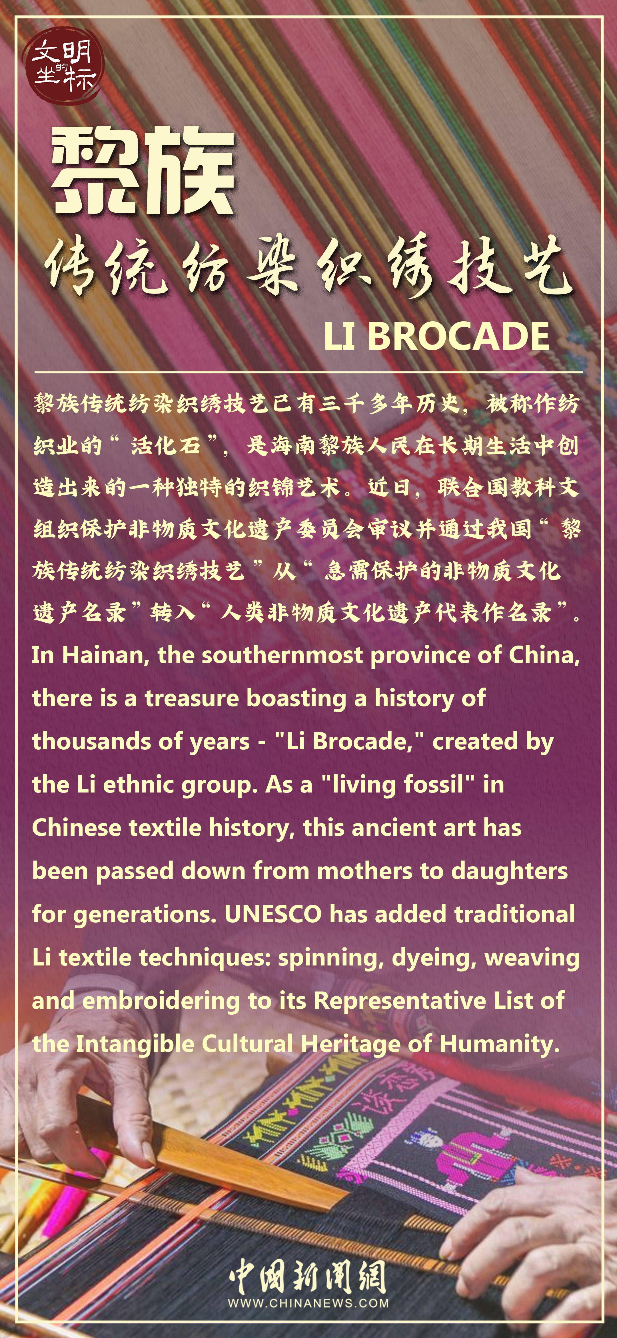 日前,黎族傳統(tǒng)紡染織繡技藝從聯(lián)合國教科文組織“急需保護(hù)的非物質(zhì)文化遺產(chǎn)名錄”轉(zhuǎn)入“人類非物質(zhì)文化遺產(chǎn)代表作名錄”,引發(fā)關(guān)注。黎族傳統(tǒng)紡染織繡技藝已有三千多年歷史,被稱作紡織業(yè)的“活化石”。對于沒有創(chuàng)造文字的黎族,黎錦像是一本“史書”,寫就了這個民族的文化和智慧。早在新石器時代,海南島上的黎族先民已會使用工具制作繩索或絲線。西漢時期,已織造出精美的“廣幅布”。至宋代,黎族的紡織達(dá)到很高水平。元代,黎族紡織工藝已傳至全國。黎族傳統(tǒng)紡染織繡技藝有麻織、棉織、織錦、印染(包括扎染)、刺繡、龍被等品種,以色彩鮮艷、圖案多樣、工藝精湛而聞名。如今,古老黎錦正穿越歷史長河,以時尚化、潮流化、年輕化的設(shè)計(jì)形態(tài)融入現(xiàn)代日常生活。