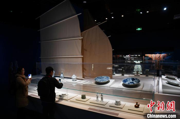 12月21日,“傳奇之旅:馬可·波羅與絲綢之路上的世界”展覽在四川博物院正式面向公眾開放。圖為觀眾參觀現(xiàn)場展出的中國元代青花瓷系列展品。 中新社記者 張浪 攝