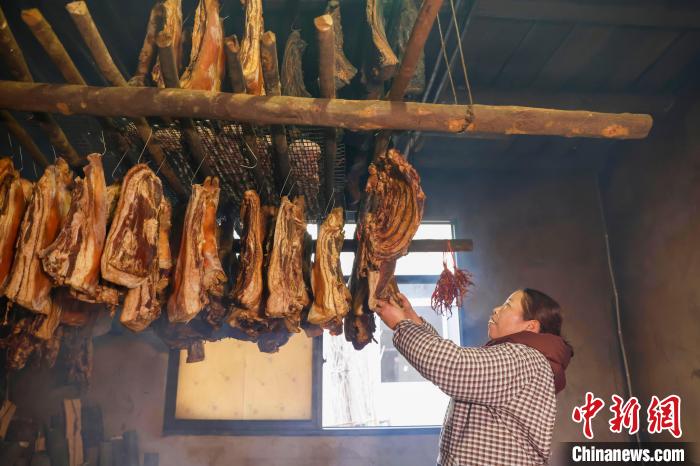 圖為貴州施秉云臺村一農(nóng)家樂業(yè)主在查看熏制臘肉、香腸的情況。磨桂賓 攝