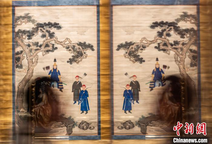 圖為觀眾從故宮博物院藏《康熙帝戎裝像》展品前經(jīng)過。中新網(wǎng)記者 侯宇 攝
