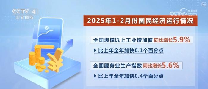 數(shù)據(jù)顯示,2025年1—2月份,工業(yè)生產(chǎn)較快增長,全國規(guī)模以上工業(yè)增加值同比增長5.9%,比上年全年加快0.1個百分點。服務(wù)業(yè)增勢較好,全國服務(wù)業(yè)生產(chǎn)指數(shù)同比增長5.6%,比上年全年加快0.4個百分點。市場銷售增長加快,社會消費品零售總額83731億元,同比增長4.0%,比上年全年加快0.5個百分點。