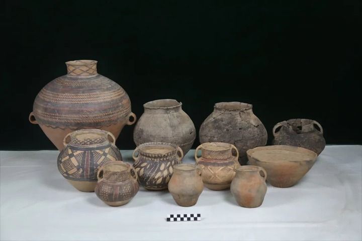 寺洼遺址內(nèi)出土的半山類型陶器。新華社發(fā)(寺洼遺址聯(lián)合考古隊供圖)