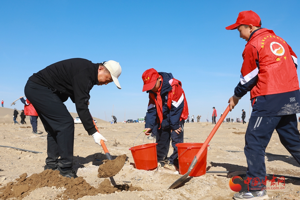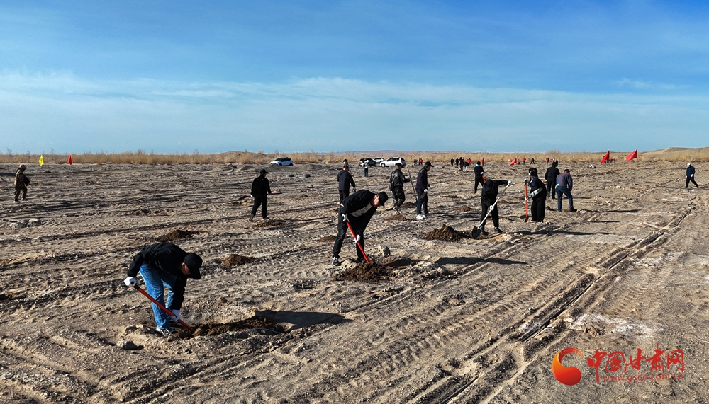 4月9日,酒泉市金塔縣金核公路城西義務(wù)植樹基地,來自酒泉市直機(jī)關(guān)和金塔縣的干部職工以及學(xué)生開展義務(wù)植樹活動。