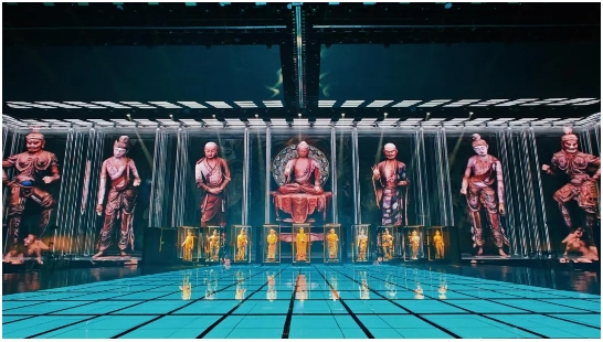 舞美奇觀:運用前沿數(shù)字技術(shù),結(jié)合精妙的舞臺設(shè)計和燈光效果,在舞臺上立體還原敦煌洞窟的恢弘與壁畫的精妙,營造如夢似幻的沉浸式觀演體驗。