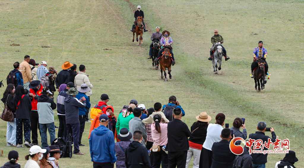 當(dāng)日,肅南裕固族自治縣“相約康樂草原 體驗(yàn)民族風(fēng)情”傳統(tǒng)文化展演活動拉開帷幕,來自肅南縣3個(gè)鄉(xiāng)鎮(zhèn)22個(gè)村的160多名騎手,自發(fā)匯聚于此,展開大馬賽、小馬賽、圓口賽、對牙賽等精彩賽事,將草原的速度與激情演繹得淋漓盡致,吸引了上海、廣東、安徽、福建等地的萬名游客觀賞賽馬和領(lǐng)略雪山、森林、草原為一體的祁連山美麗景色。