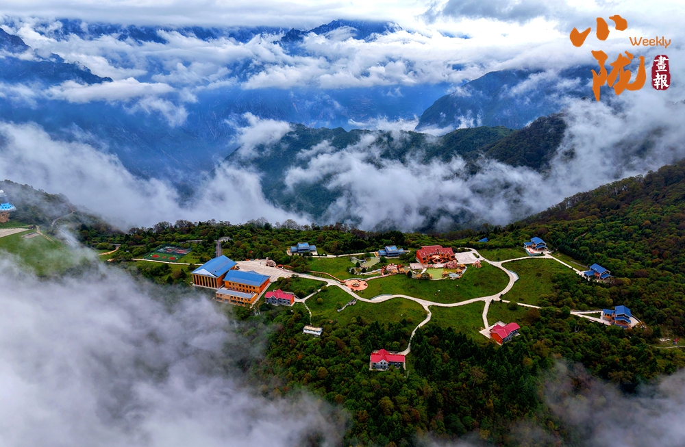 霧氣繚繞之間,山巒若隱若現。這座藏于山水之間的靈秀之地,在霧海的映襯下,如詩如畫,展現出一種超脫塵世的靜謐與神秘。
