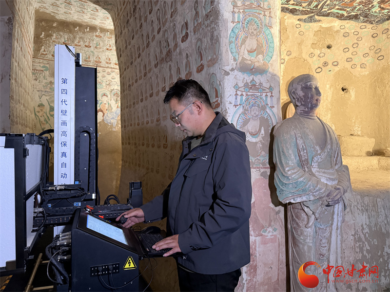 10月31日,由中央網(wǎng)信辦網(wǎng)絡(luò)傳播局、國(guó)家文物局政策法規(guī)司指導(dǎo),中國(guó)互聯(lián)網(wǎng)發(fā)展基金會(huì)特別支持,甘肅省委網(wǎng)信辦、省文物局主辦,張掖、嘉峪關(guān)、酒泉市委網(wǎng)信辦與敦煌研究院、中國(guó)甘肅網(wǎng)、鳳凰網(wǎng)甘肅頻道共同承辦的“何以中國(guó)|壁畫里的中國(guó)·當(dāng)AI遇見小飛天”網(wǎng)絡(luò)主題宣傳活動(dòng)走進(jìn)敦煌研究院,采訪了在莫高窟拍壁畫的攝影師喬兆福。