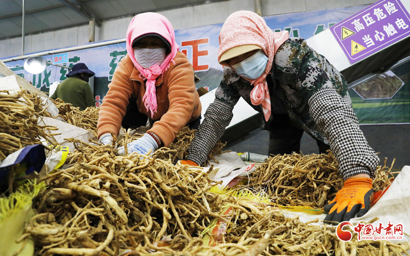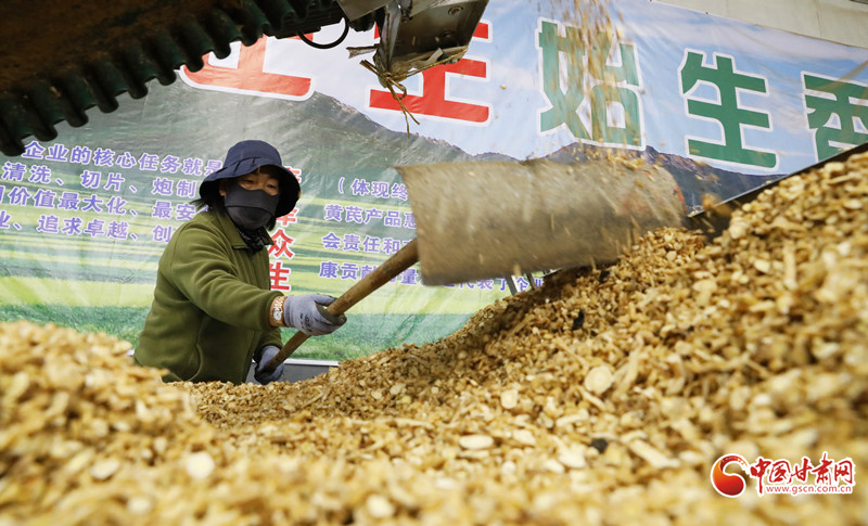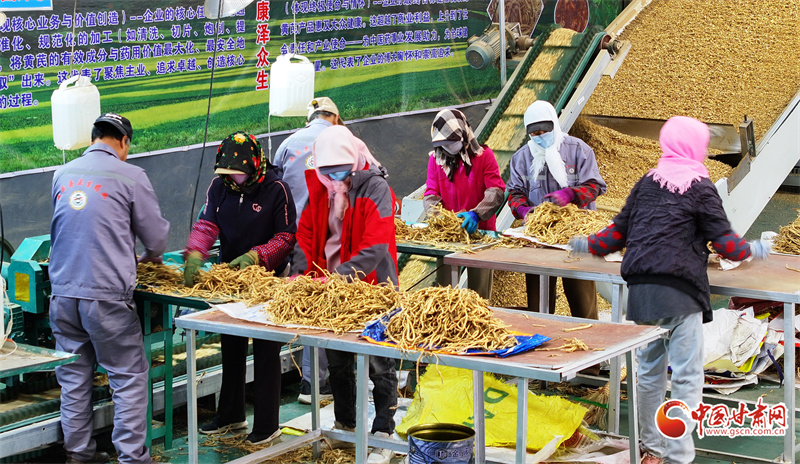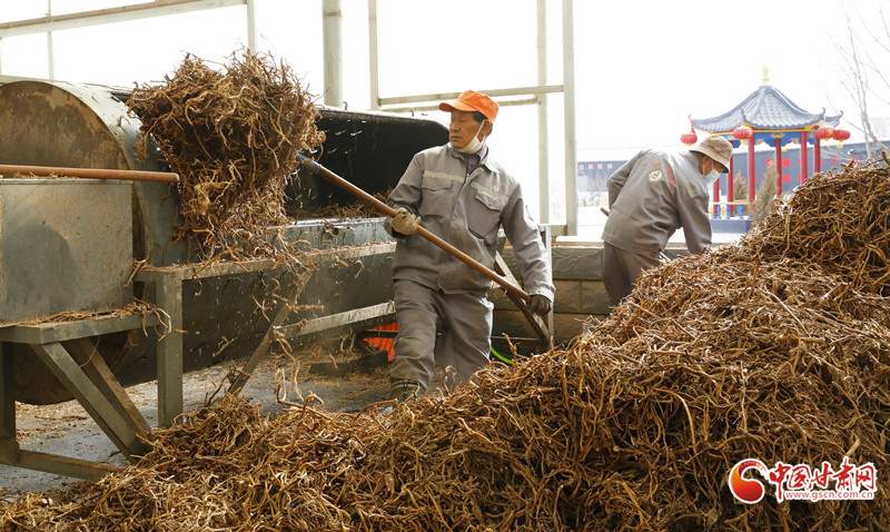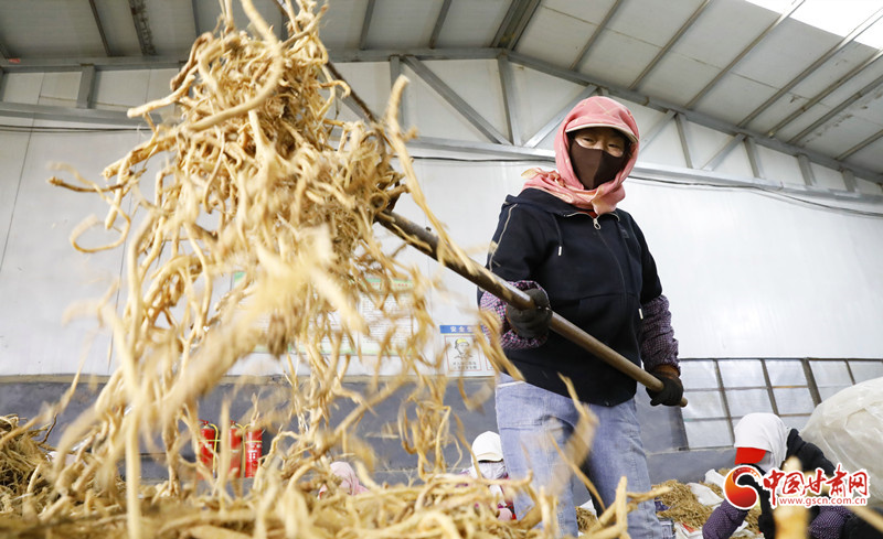 3月17日,在位于民樂縣順化鎮(zhèn)的正生藥業(yè)有限公司中藥材切片車間內,工人們正在分揀、切片、晾曬中藥材。