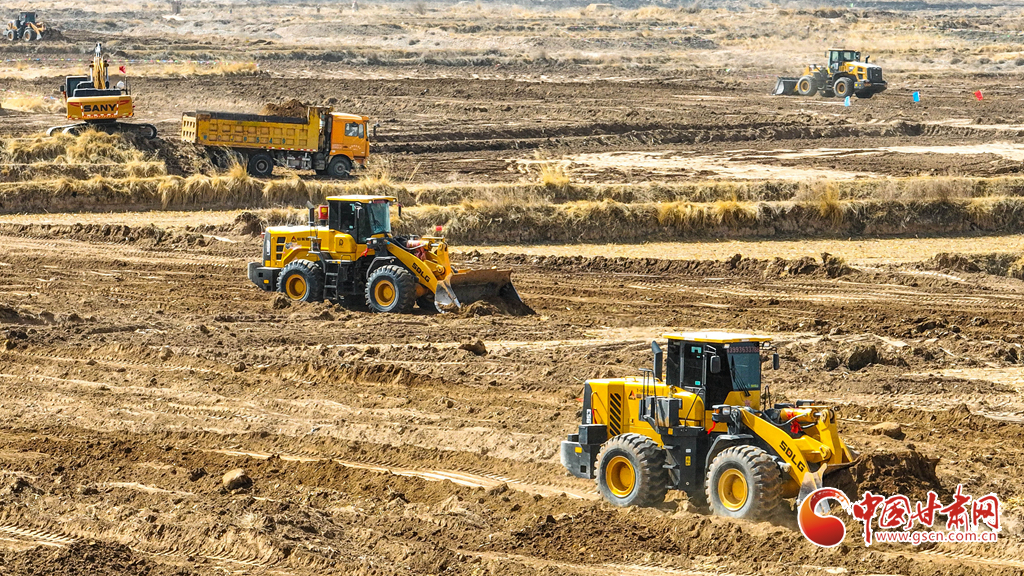 3月20日,在張掖市民樂縣新天鎮(zhèn)李寨村高標準農田建設現(xiàn)場,推土機、平地機在田野間往來穿梭,將高低不平、細碎零散的“小塊田”逐步整合為連片“大田”。