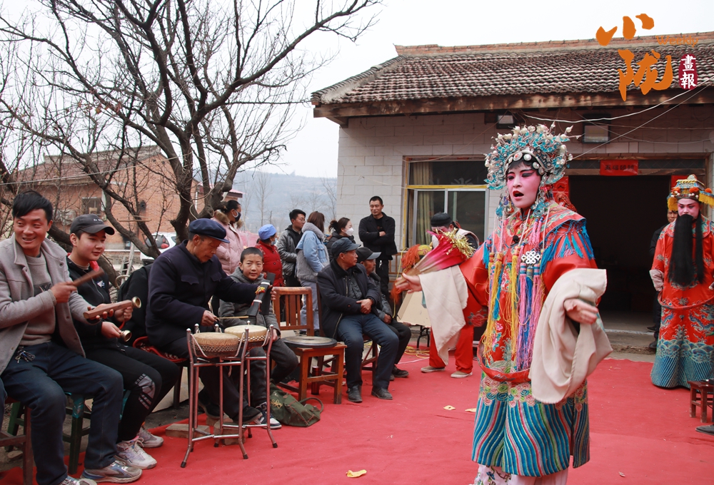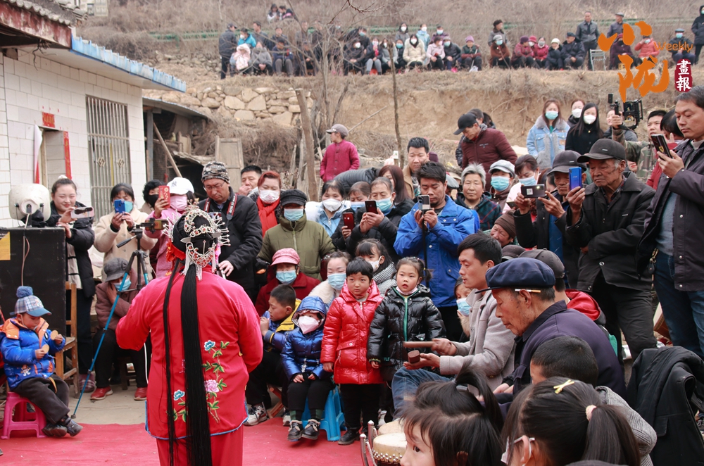 民居門口的舞臺(tái)上,多位扮相精致的演員依次亮相,或持扇或執(zhí)巾,唱腔婉轉(zhuǎn)、身段靈動(dòng)。臺(tái)下村民圍得水泄不通,不少人舉著手機(jī)定格精彩瞬間,伴奏的鑼鼓弦樂聲里,滿是濃郁的鄉(xiāng)土氣息。