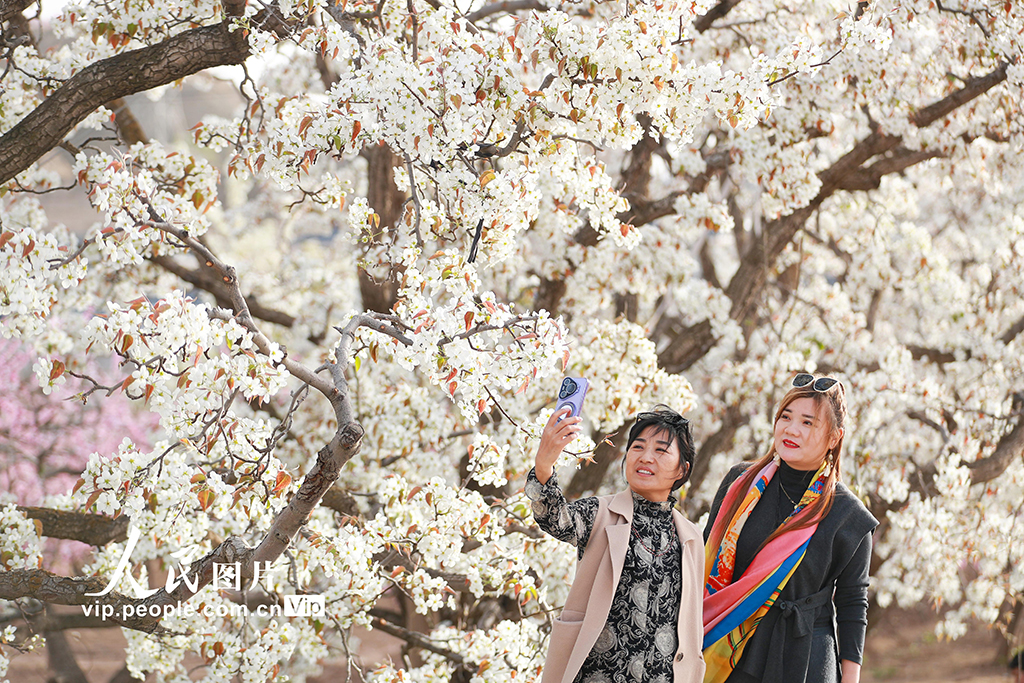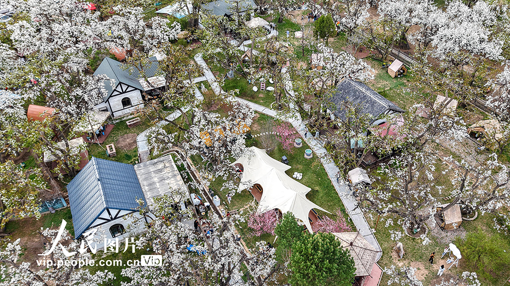 2026年4月11日,甘肅蘭州皋蘭縣什川古鎮(zhèn)萬畝百年古梨園梨花競相綻放,吸引不少市民游客踏青游園、露營休憩,盡享春光。